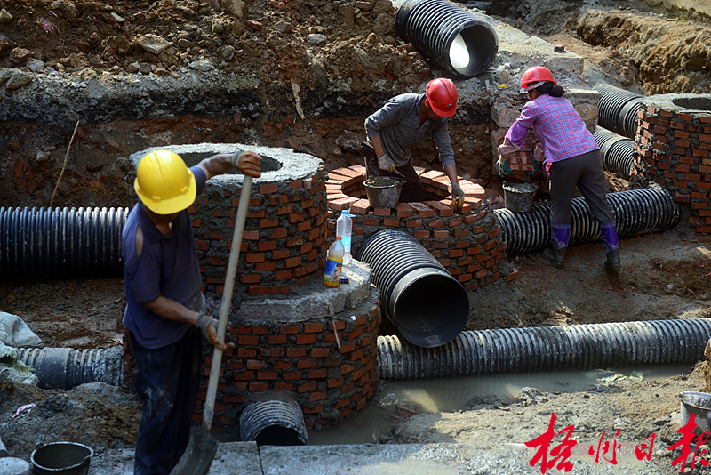 ????4月10日,施工人員在富民片區(qū)二橋小區(qū)進(jìn)行排水設(shè)施施工。