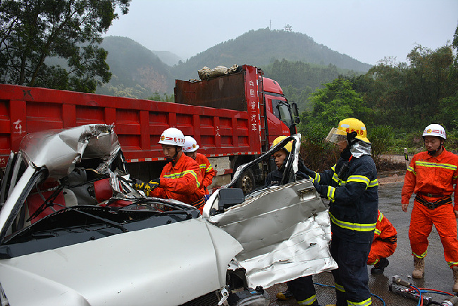 ????接警后,當地消防救援人員快速趕往事發地,發現一輛紅色貨車與面包車撞在一起,面包車嚴重授損,面包車前方還有一輛電動車倒在地上,該事故造成的2名受傷人員在消防救援人員到達前已送往醫院救治,面包車駕駛員還被困車上。了解情況后,消防救援人員立即組織救援工作,利用液壓擴張器對面包車進行擴張,將被人員救出,經現場120醫務人員診斷,已無生命跡象。