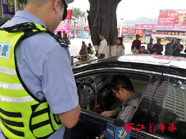 4月25日,執(zhí)勤交警截停一名不禮讓行人的駕駛員,按規(guī)定對其進行處罰。西江都市報記者 陳雨燕 攝