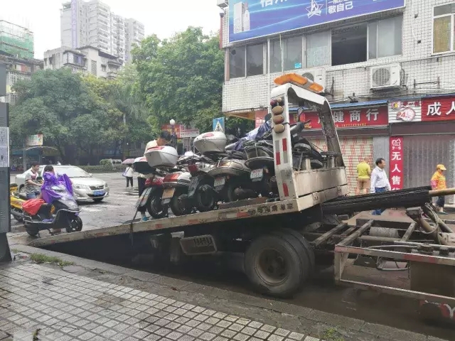 街頭上被暫扣的兩輪車。陳雨燕/攝