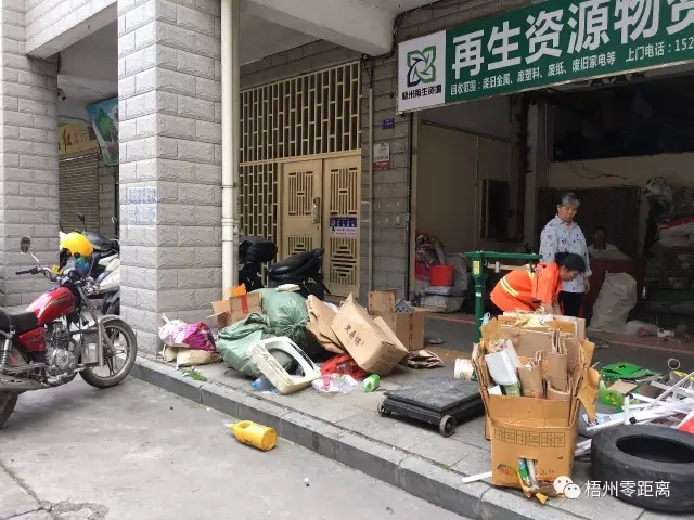 ????但在南堤路(沙街)一帶,仍有許多商戶、廢品收購站把貨物、廢品堆放在路邊,占據(jù)了大半個人行道。