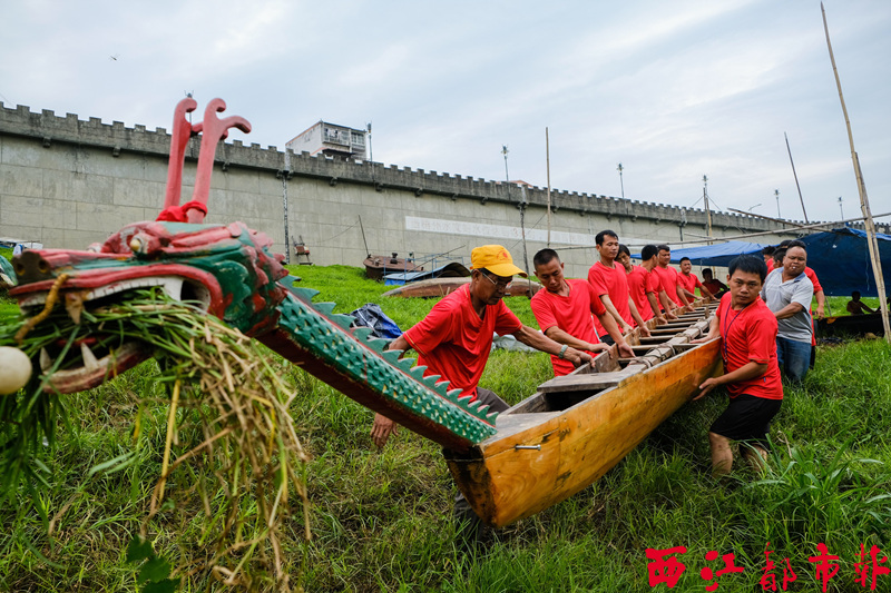 為了備戰(zhàn)一年一度的龍舟大賽,新三云酒家隊(duì)啟用了新龍舟。5月18日,隊(duì)員抬新龍舟下水。