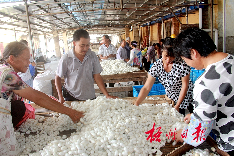 ??? 蒙山縣持續發展蠶桑產業,普及良種良法應用,提高蠶繭產量和質量。該縣今年第三批養蠶2200多張,平均每張產繭約50公斤,目前每公斤收購價在46元左右。 江永錄 攝