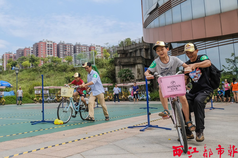 當(dāng)日,為了倡導(dǎo)“綠色、環(huán)保、低碳、健康”理念,由梧州市青少年宮組織的“綠色家庭·綠色出行”親子騎行嘉年華在梧州市玫瑰湖公園開(kāi)展。本次活動(dòng)共有14個(gè)家庭參加,通過(guò)一系列小游戲和環(huán)行玫瑰湖公園等活動(dòng),讓大家感受騎行的樂(lè)趣,為宣傳綠色出行盡自己的一份努力。本報(bào)記者 楊揚(yáng) 攝參加嘉年華的家庭在騎車扎氣球的游戲中奮勇?tīng)?zhēng)先。