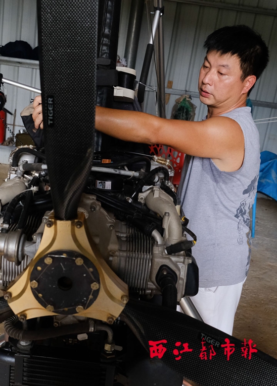 每次飛行前,扈劍都要給螺旋槳“熱身”。