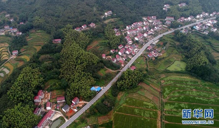 ????航拍舒城縣山七鎮(zhèn)小河村田園風光(10月6日攝)。安徽省舒城縣山七鎮(zhèn)是位于大別山余脈的一個小鎮(zhèn)。近年來,當?shù)匕驯Wo綠水青山作為推動經(jīng)濟社會發(fā)展的重要抓手,大力發(fā)展鄉(xiāng)村旅游,涌現(xiàn)出一批美麗村落。新華社記者 陶明 攝