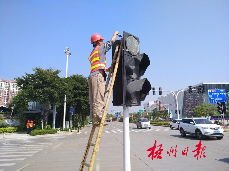 ????為確保今年寶石節期間主要場館及周邊地區交通順暢,近日市交通管理部門對舜帝大道、紅嶺路等道路的交通信號燈進行檢查和維修。