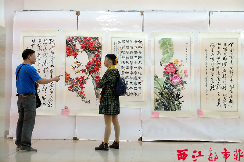 日前,在萬秀區(qū)文化館,市民在參觀書畫展。