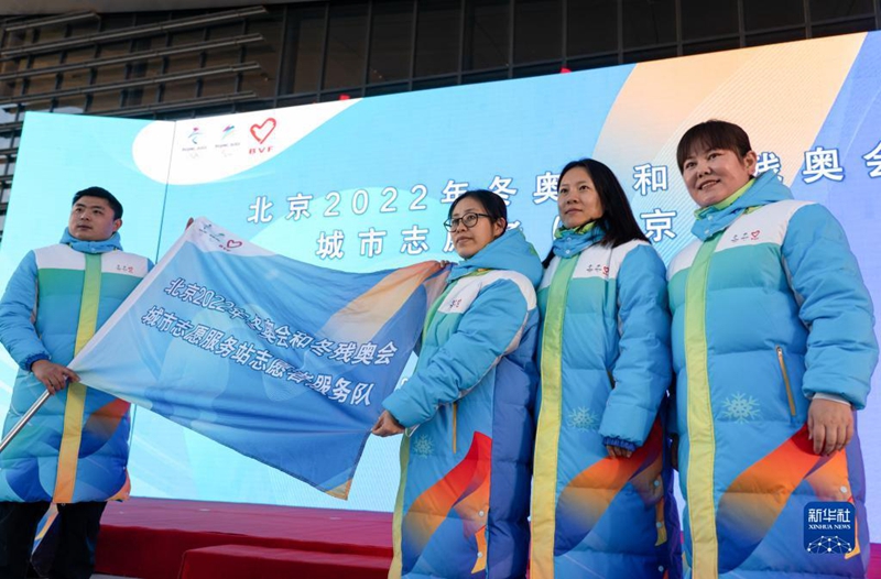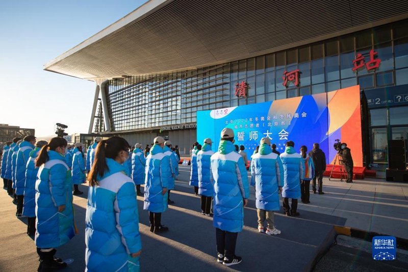 當(dāng)日,北京2022年冬奧會(huì)和冬殘奧會(huì)城市志愿者(北京市)誓師大會(huì)在北京的京張高鐵清河站舉行,50余名城市志愿者代表參加了活動(dòng)。新華社記者 陳鐘昊 攝