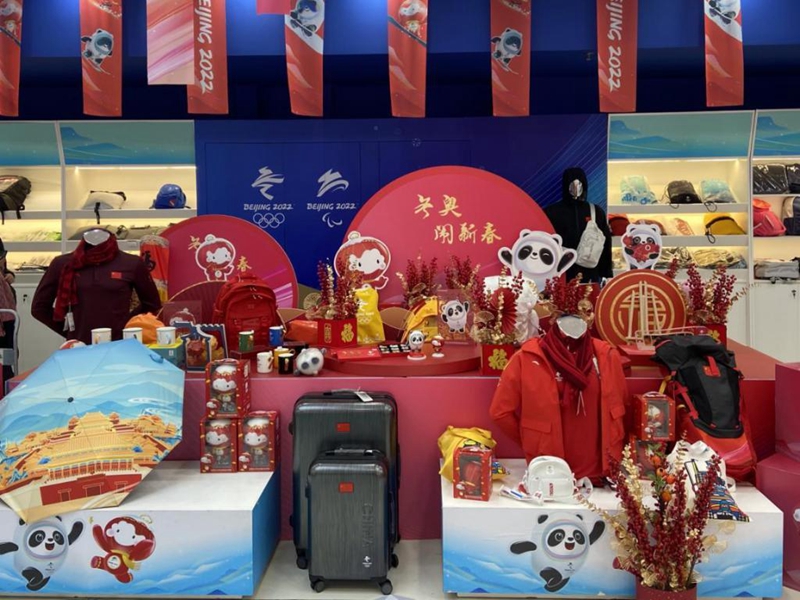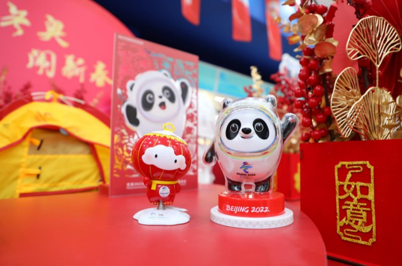 北京冬奧會迎春祈福吉祥禮盒、“北京的春節”系列徽章、“老北京的冰上時光”系列徽章等春節主題特許商品成為年貨節的一大亮點。“冰墩墩”“雪容融”毛絨玩具套裝、手辦、發夾、筆袋、項鏈等以吉祥物為主要元素的“暢銷爆款”也齊聚亮相。