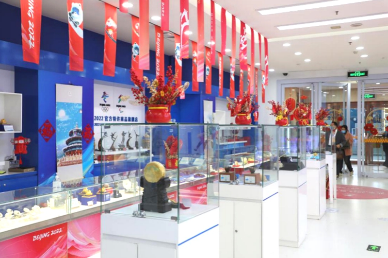 除眾多具有實用性的特許商品外,很多體現非遺技藝的、具有較高收藏價值的工藝品也在本次年貨節上集中推出。北京冬奧徽寶系列產品、冬奧官帽茶盞、冰雪玉如意等工藝品為消費者提供了更多選擇。