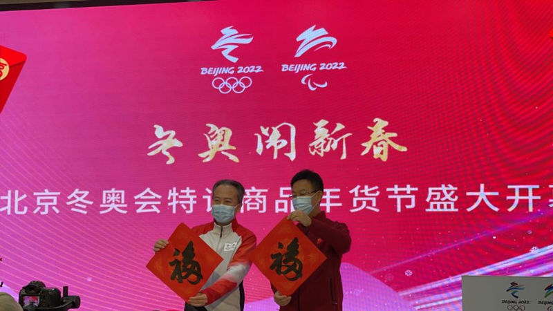 新華社北京1月12日電 (記者 胡佳麗 汪涌)12日上午,“冬奧鬧新春”——北京冬奧會特許商品年貨節在北京2022官方特許商品旗艦店開幕。北京冬奧組委和特許經營企業代表出席開幕式。