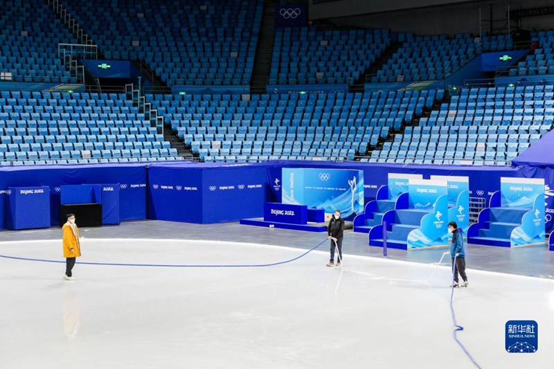 1月12日,工作人員在首都體育館內(nèi)工作。
