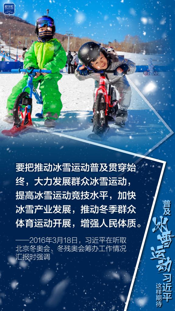 北京攜手張家口申辦冬奧會(huì)以來,習(xí)近平在多個(gè)場合表達(dá)以冬奧會(huì)為契機(jī),大力普及冰雪運(yùn)動(dòng)的殷切期望。