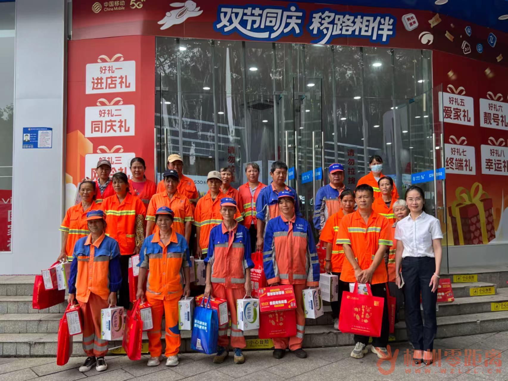 特別是在國慶中秋雙節期間,梧州移動公司策劃了“移動送溫暖,雙節情更濃”迎中秋慶國慶主題活動,誠邀轄區內20多名環衛工人走進新興三路營業廳,共度別樣佳節。當天,環衛工人們身著整潔的工裝,在工作人員的熱情引導下走進營業廳,瞬間被這份暖意包圍。營業廳內特意設置了“暖心休息區”,準備了熱茶,讓大家在忙碌之余先歇歇腳、補充能量,在溫馨互動中感受關懷。