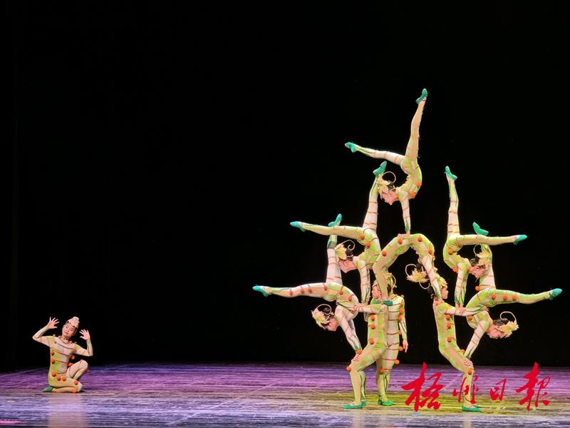 11月8日,創意雜技劇《百越稻盛》在市文化展覽中心舉行,雜技演員們的精彩表演贏得觀眾陣陣掌聲。 記者 何鎏 攝