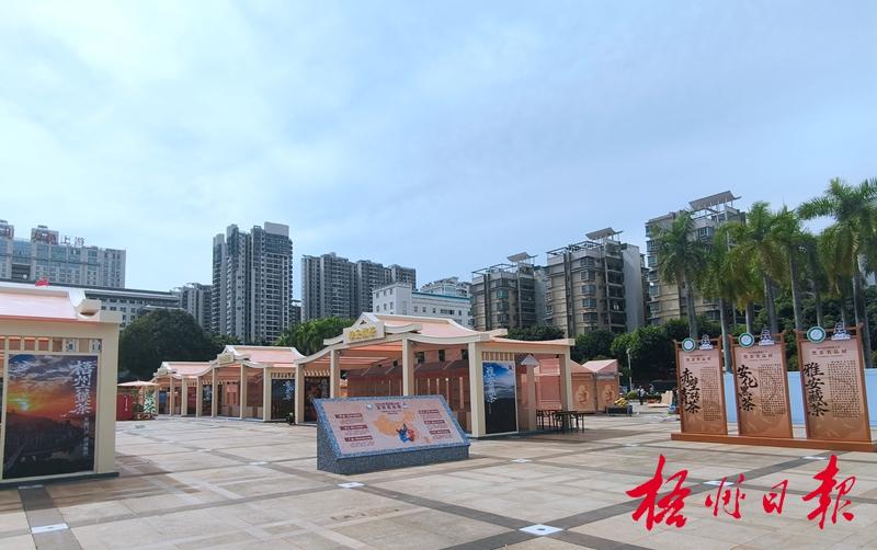 11月11日,在市政廣場,黑茶名品展的100多個展位基本搭建完畢。