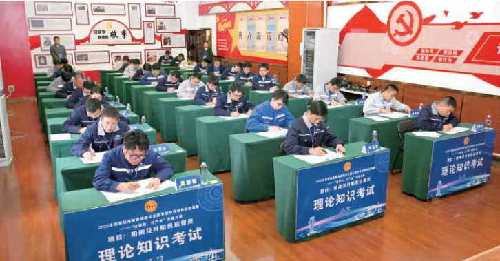 理論考試著重考察船閘及升船機法律法規、行業規范等基礎內容,選手們在考試中認真答題。 (西江集團供圖)