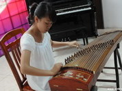 白衣少女彈古箏