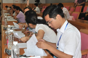 ???? 9:21 第二輪職位(市民政局副局長)面談結束,會場統計員回收常委會成員和評議組成員填寫的《評分表》和《評議表》,并交給統計員進行面談得分及評議結果統計。