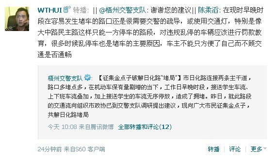 梧州交警微博征點子為日化路“治堵”